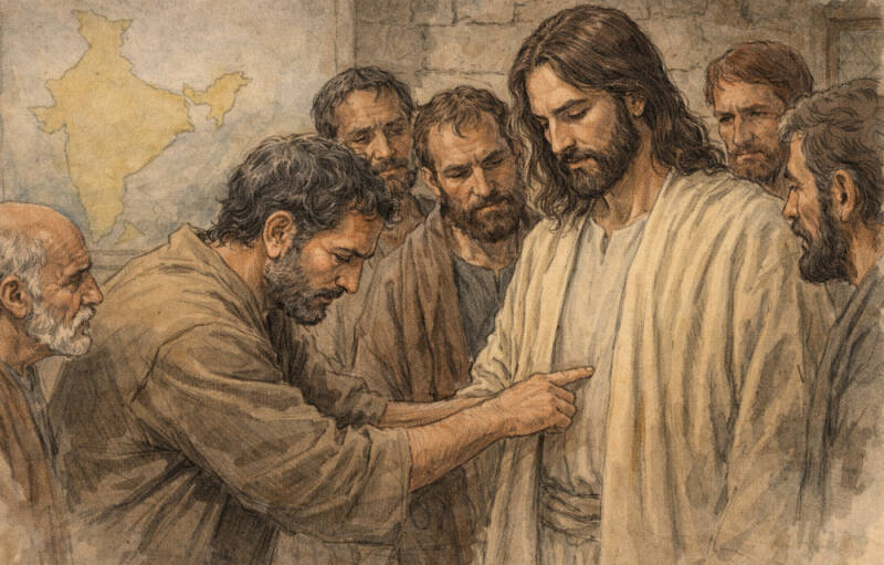 “Now you know exactly what you did. You doubted me. I told you I’d rise from the dead, but you didn’t believe. You are a failure. These other disciples didn’t ponder or wrestle with this truth. It’s such a simple concept: I said I’d rise, didn’t I? There’s something wrong with you. Your analytical brain is an obstacle for Me. You overthink things and are thus defective. And worse, are ineffective for ministry. If you can’t believe Me and what I said - or the testimony of other disciples, you’ll never have enough faith to share the gospel with people who hate you. Don’t you even want to believe Me or know Me? Forget about India! You blew it. You’ll never have enough faith to serve Me.”